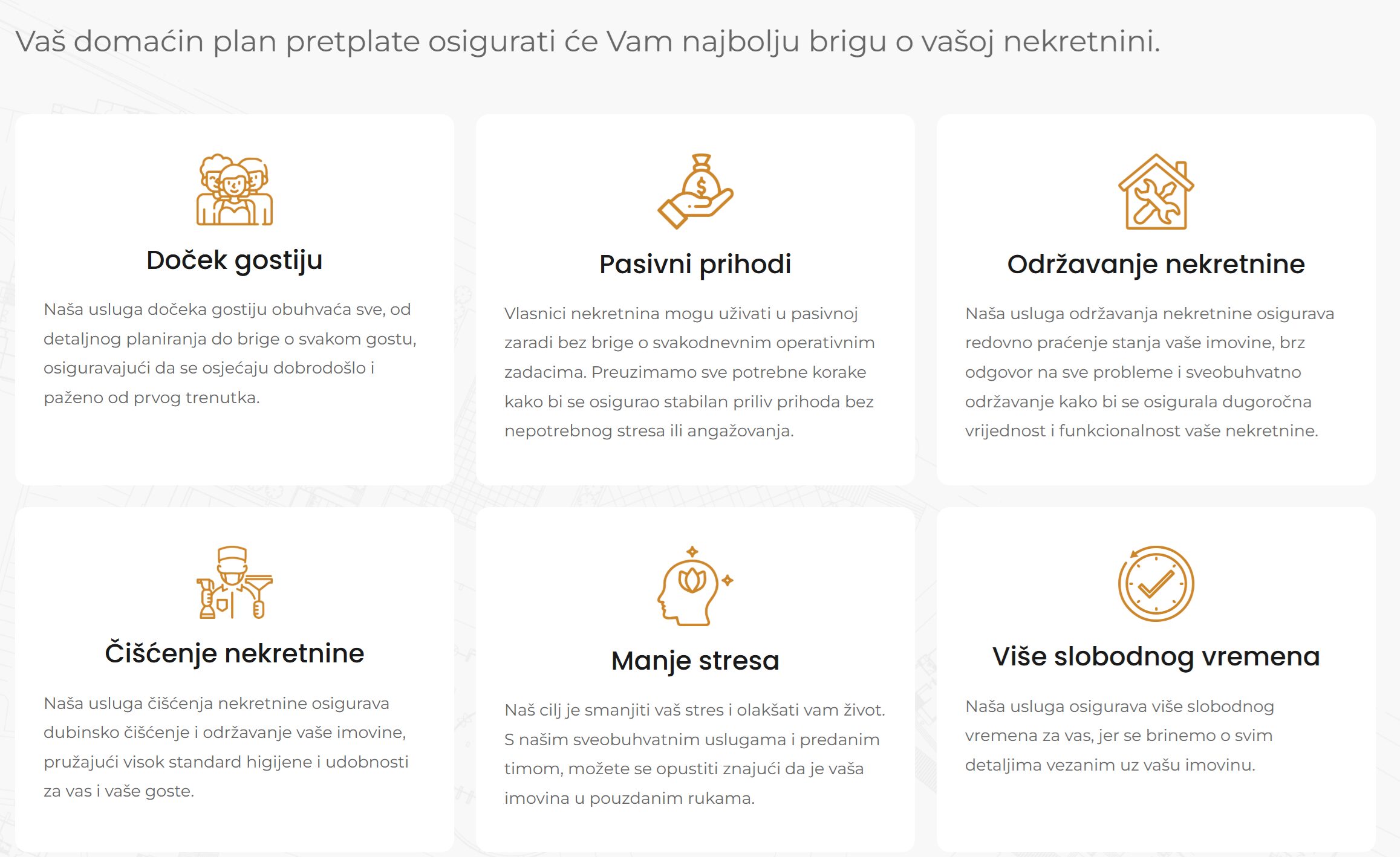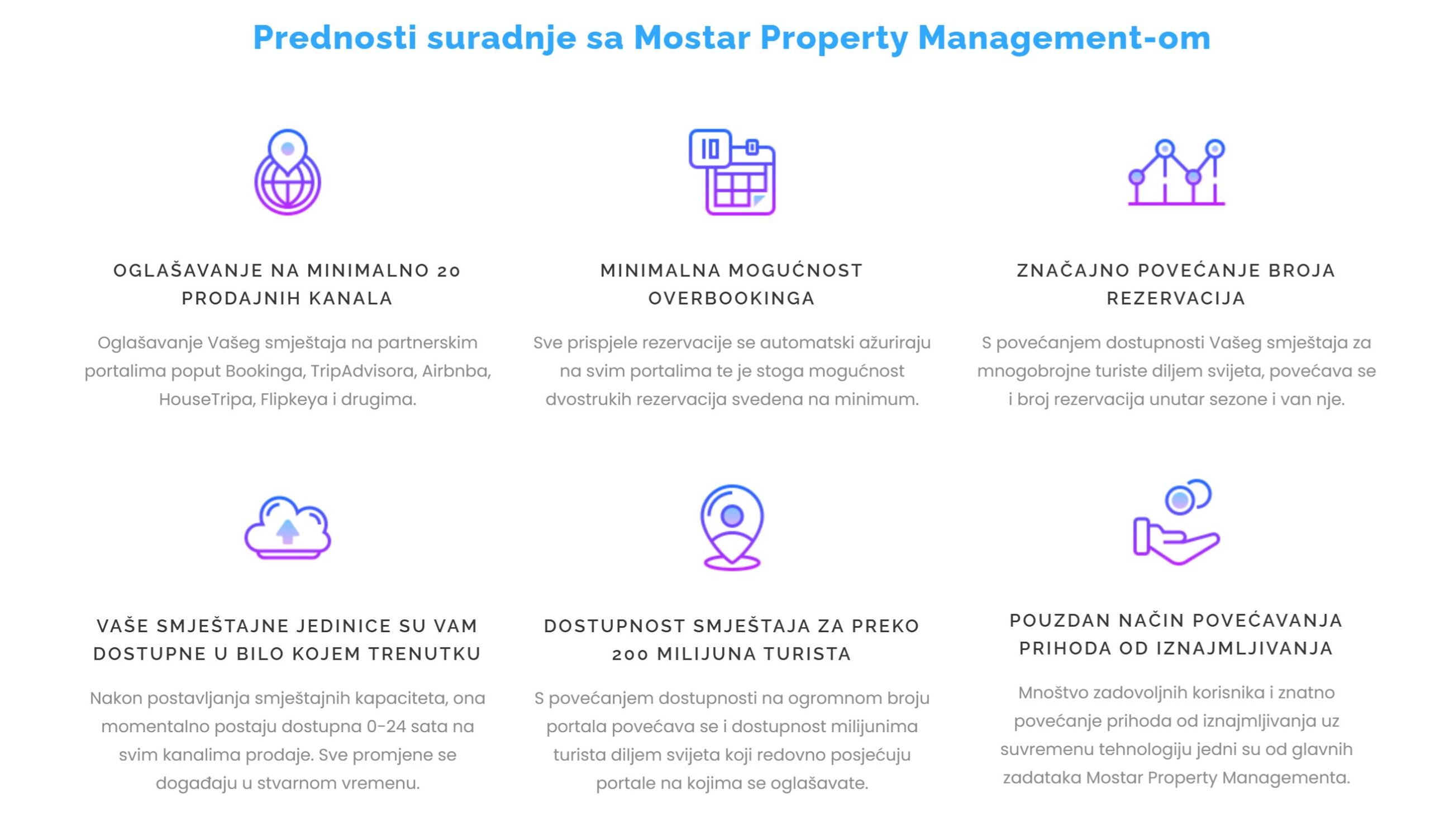• Kompletna usluga: Od oglašavanja i upravljanja rezervacijama do dočeka gostiju i održavanja nekretnina, klijenti dobivaju sveobuhvatnu uslugu na jednom mjestu.